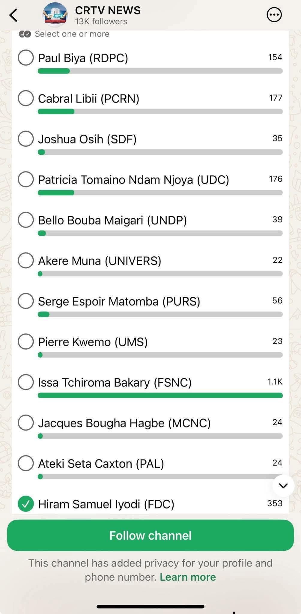 CAMEROUN :: Le retrait troublant d'un sondage WhatsApp par la CRTV :: CAMEROON