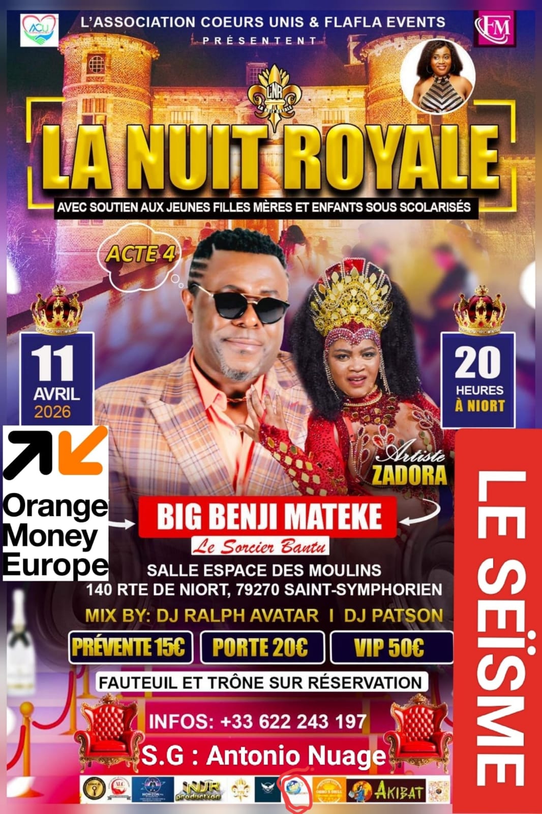 Niort s’apprête à vibrer une nouvelle fois au rythme de LA NUIT ROYALE, dont l’acte 4 est annoncé pour le 11 avril 2026. Porté par l’association Cœurs Unis et orchestré par FLAFLA EVENTS, l’événement s’impose comme un temps fort mêlant culture, solidarité et célébration artistique.