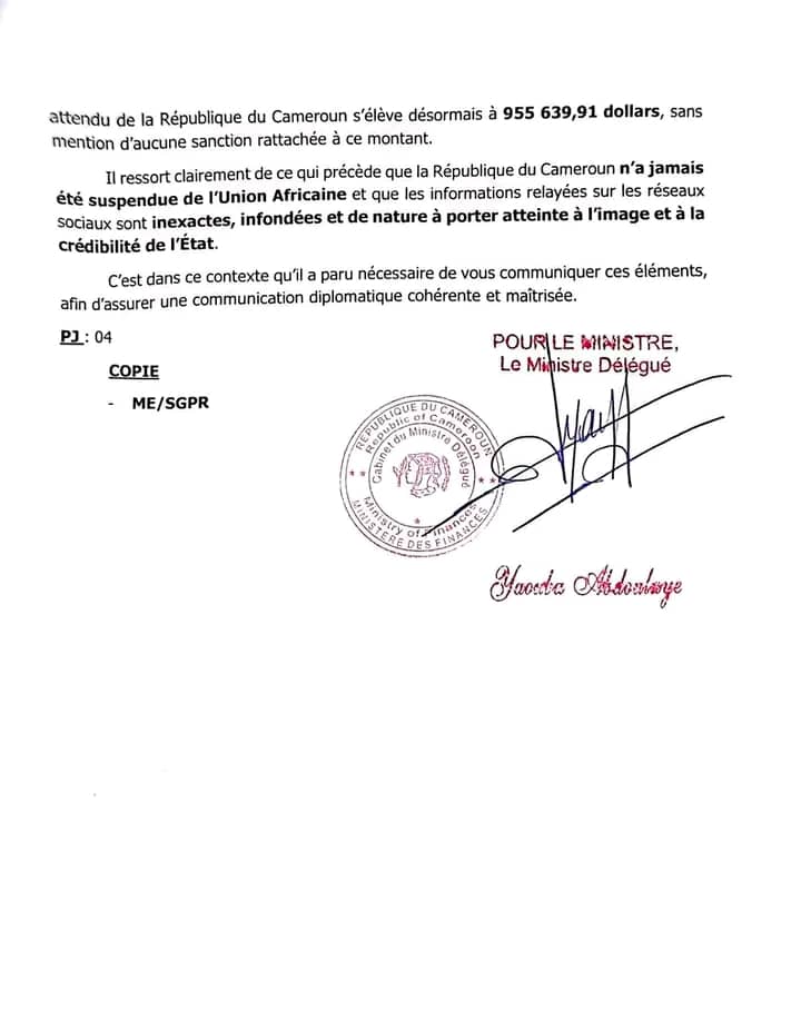 Cameroun et Union Africaine : la vérité sur la prétendue suspension pour impayés :: CAMEROON