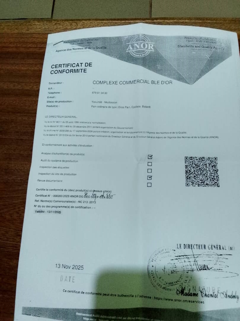 Au-delà de cette déclaration, un certificat de conformité délivré par l'ANOR , datant du 13 novembre 2025 , dont la validité coure jusqu'au 13 novembre 2026 a été présenté à la presse nationale et internationale au cours de cette conférence de presse. Une visite guidée du promoteur , conduite par le responsable production M. Tchoupou Ulrich,dans la fameuse salle de production d'Oyom-Abang et Nkolbisson qui fait l'objet d'une cabale depuis quelques jours sur les réseaux sociaux, a été effective question pour les Hommes de médias de toucher du doigt les réalités et les conditions dans lesquelles les produits sont fabriqués ( Hygiènes) dans cet extrait de vidéo réalisé par notre reporter Myriam Zouga.